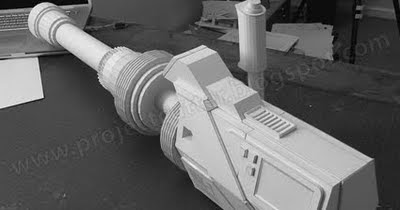 Here it is, my first draft model of a full size Bazookoid, made from craft paper/card. WOW - This is a cool prop! but I can understand now why the actors felt that the MK-1 was awkward to hold and use in the show...